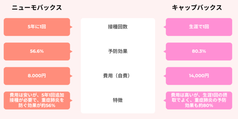 ニューモバックスとキャップバックス、それぞれに特徴があり、どちらも肺炎予防に重要な役割を果たします。以下にポイントをまとめました。