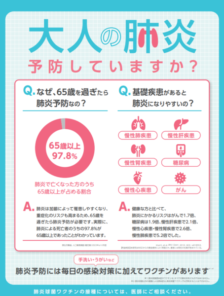 あなたの呼吸器の健康を守り、いつまでも元気に過ごすために、肺炎球菌ワクチンの接種をぜひご検討ください。